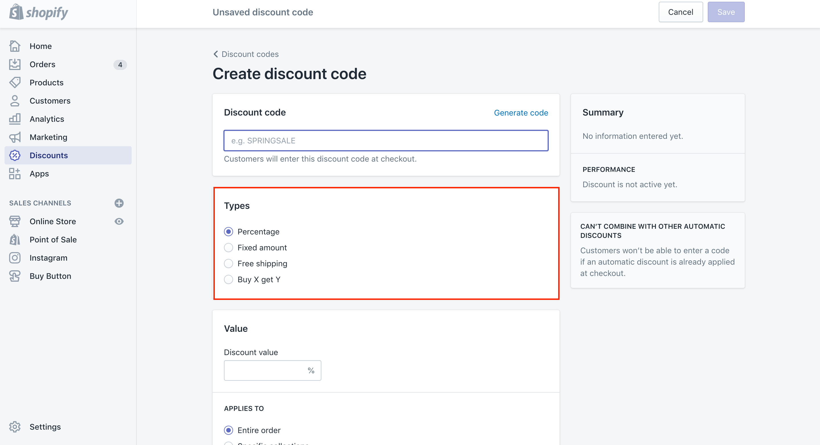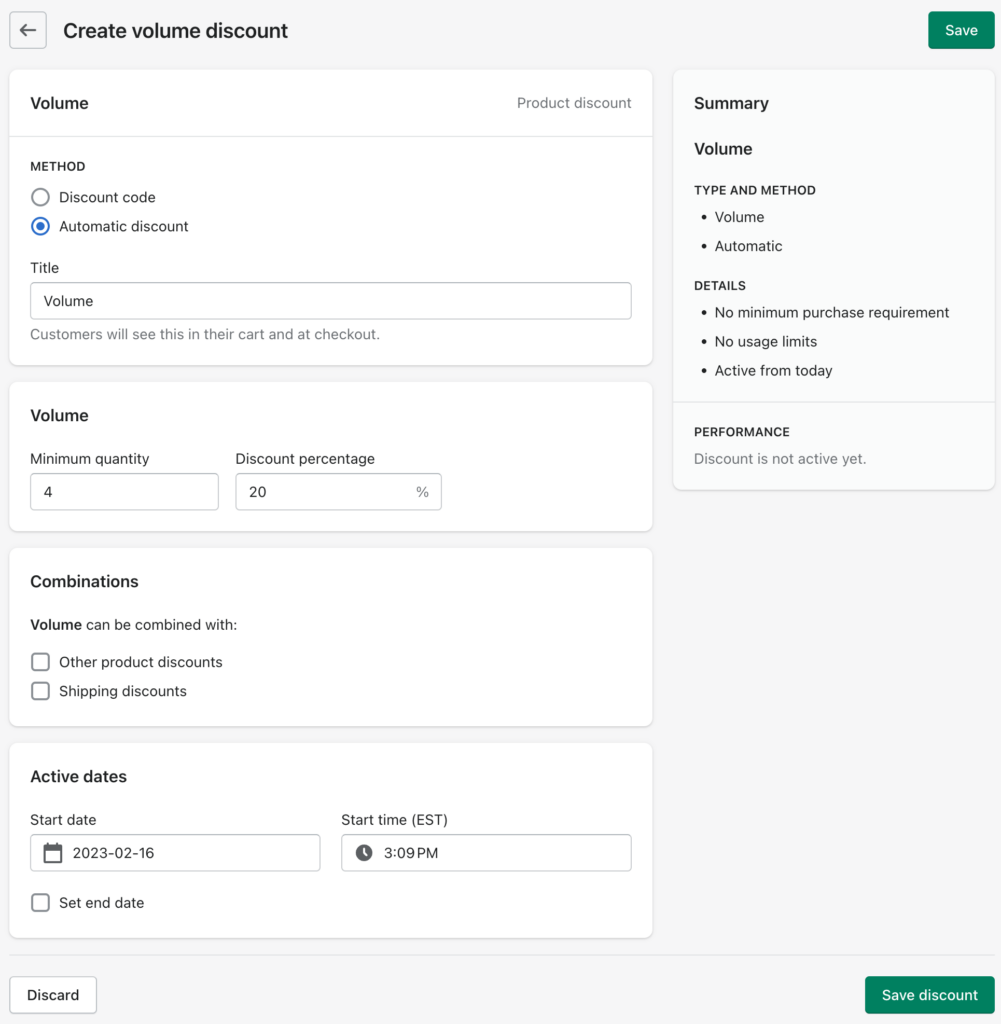 5. Customize the discount’s duration, availability, and usage limits to align with your sales strategy.