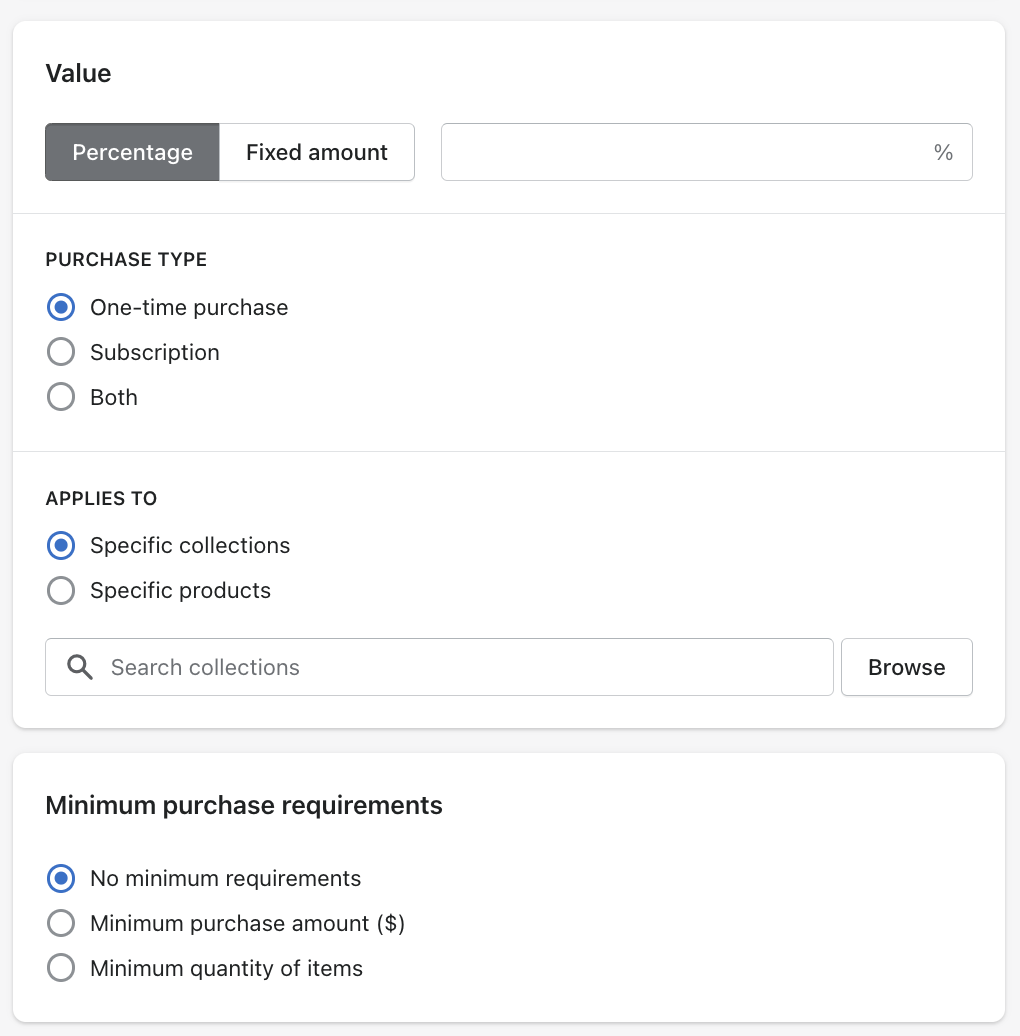 - Choose the type of discount you want to offer.